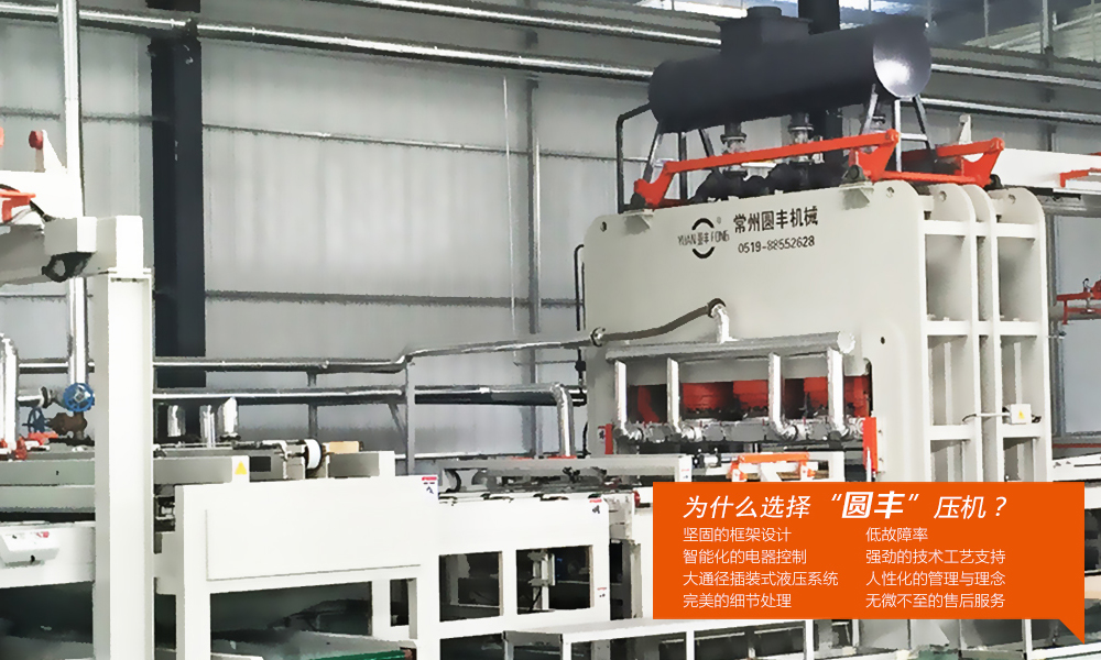 常州圓豐智能裝備有限公司(曾用名常州市洛通機械有限公司)座落于風光秀麗的太湖之濱—常州市洛陽鎮工業集中區創新路15號,是生產各類貼面壓機及液壓設備的專業公司,尤其是商標“圓豐”在業內具有很高的知名度。 我公司生產的貼面熱壓機廣泛應用于木材加工,建材裝潢等行業,適用于刨花板、中纖板、三聚氰胺浸漬紙的貼面加工和高密度強化地板三氧化鋁耐磨紙的貼面加工。熱壓機品種有4x8英尺,4x9英尺,5x8英尺,6x8英尺,7x9英尺,6x12英尺等各種規格。 熱壓機采用框架式結構,配置進板小車及出板滾…
